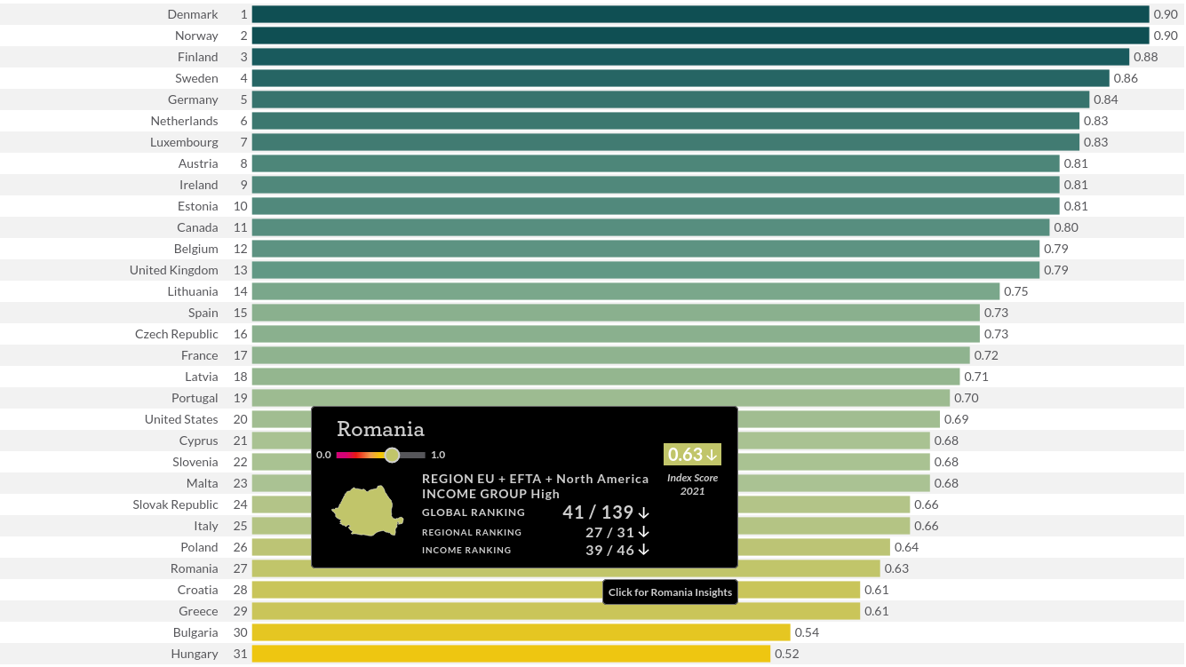 sursa ilustrației: WJP Rule of Law Index; tabelul de mai jos este disponibil şi în format editabil